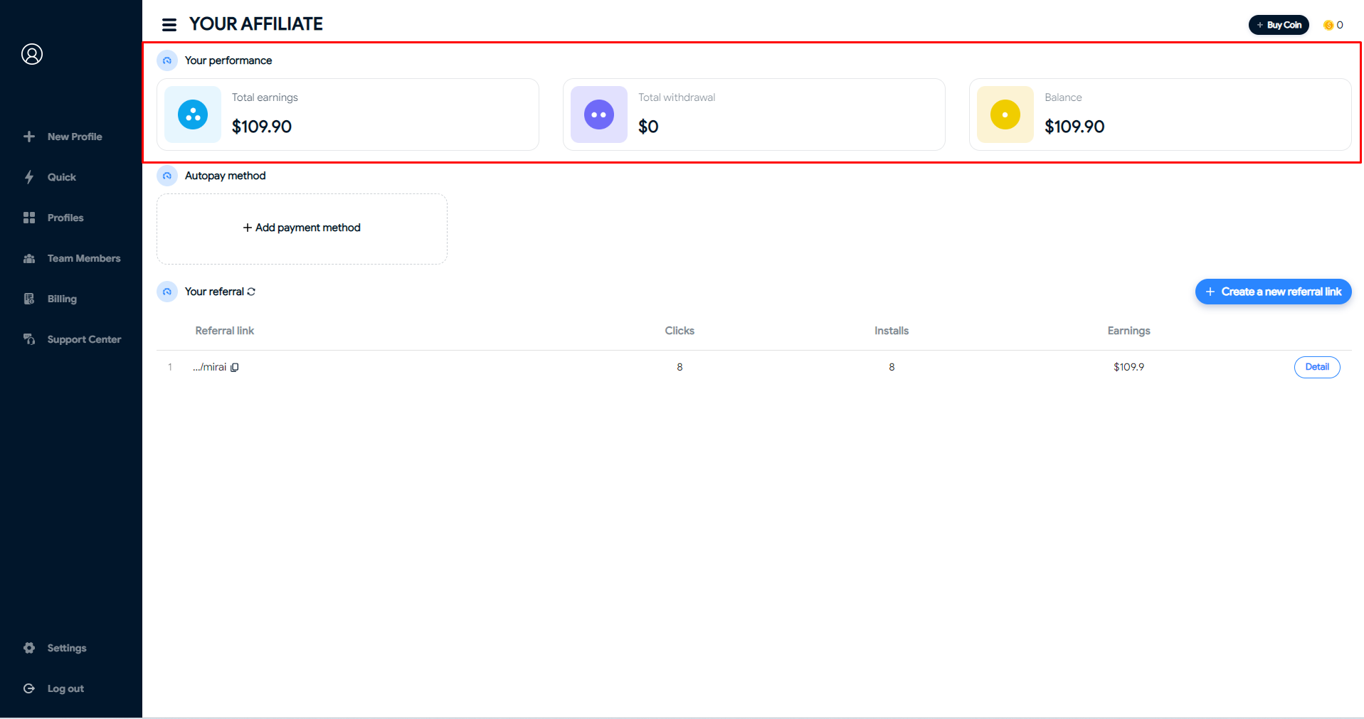 The revamped interface in Hidemyacc 3.0 can provide you with a more user-friendly experience when you join **Hidemyacc's Affiliate Program.**