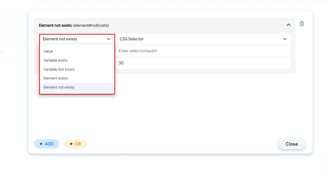 * Waiting time: Time to wait for selector verification.
